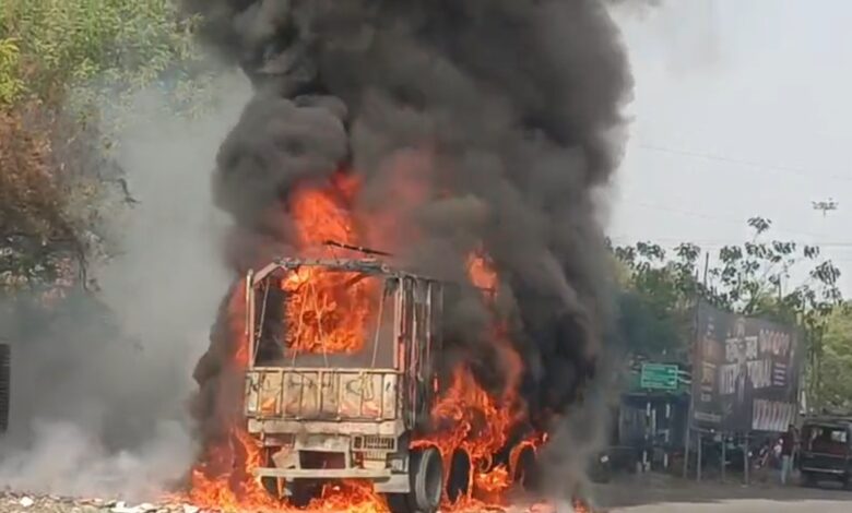 परळी शहरातील इटके कॉर्नर परिसरामध्ये मुख्य रस्त्यावरील आज दुपारी अचानक उभ्या ट्रकला आग लागल्याने या आगी मध्ये ट्रक जळून खाक झाली. प्राथमिक मिळालेल्या माहितीनुसार रस्त्याच्या बाजूला ट्रक उभी असताना ट्रॅक जवळील कचऱ्याने उष्णतेमुळे पेट घेतल्याने ट्रकला आग लागल्याची माहिती मिळत आहे.आग विझवण्यासाठी कोणीही प्रयत्न करत नसल्याचे किंवा घटनास्थळी अग्निशामक दलाचे वाहन आले नसल्याने ट्रकचे लाखोचे नुकसान झाले आहे. ही आग एवढी प्रचंड होती की आकाशात धुराचे लोळ चे लोळ पसरले होते. या रस्त्यावरील वाहतूक काही काळ थांबवण्यात आली असल्याचे देखील माहिती मिळत आहे.