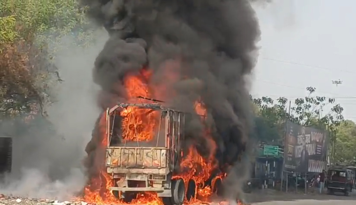 परळी शहरातील इटके कॉर्नर परिसरामध्ये मुख्य रस्त्यावरील आज दुपारी अचानक उभ्या ट्रकला आग लागल्याने या आगी मध्ये ट्रक जळून खाक झाली. प्राथमिक मिळालेल्या माहितीनुसार रस्त्याच्या बाजूला ट्रक उभी असताना ट्रॅक जवळील कचऱ्याने उष्णतेमुळे पेट घेतल्याने ट्रकला आग लागल्याची माहिती मिळत आहे.आग विझवण्यासाठी कोणीही प्रयत्न करत नसल्याचे किंवा घटनास्थळी अग्निशामक दलाचे वाहन आले नसल्याने ट्रकचे लाखोचे नुकसान झाले आहे. ही आग एवढी प्रचंड होती की आकाशात धुराचे लोळ चे लोळ पसरले होते. या रस्त्यावरील वाहतूक काही काळ थांबवण्यात आली असल्याचे देखील माहिती मिळत आहे.