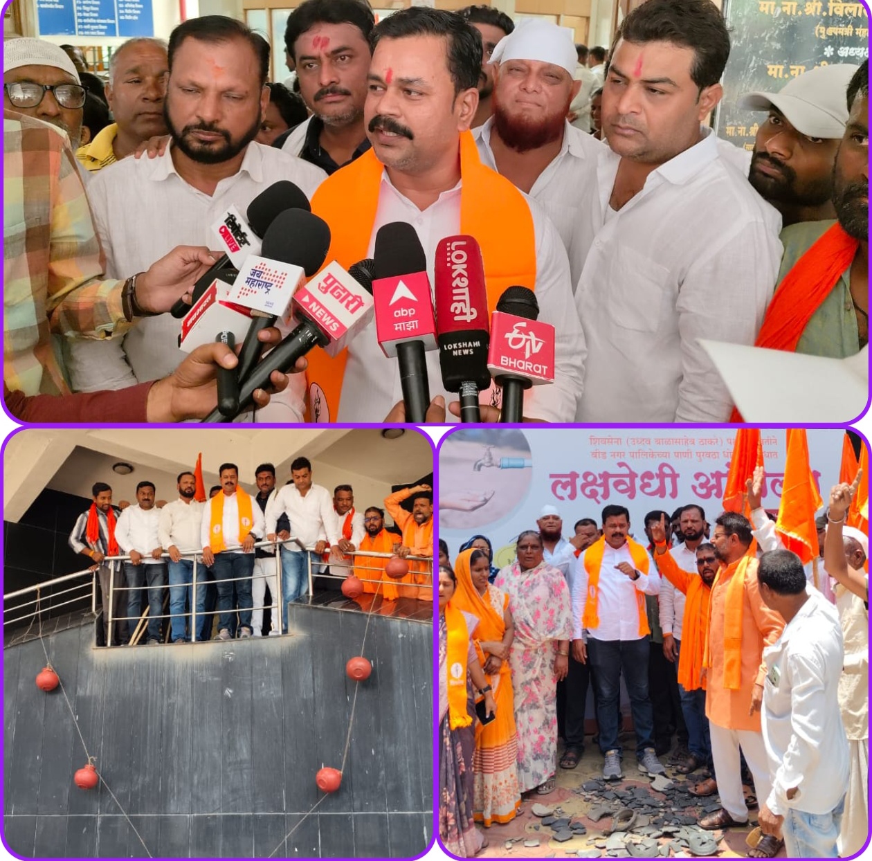 आज शिवसेना(उबाठा) जिल्हाप्रमुख उल्हास भैया गिराम यांच्या नेतृत्वाखाली बीड नगरपालिकेवर धडक मोर्चा काढत नगरपालिकेच्या दारातच मडके फोडून आंदोलन करण्यात आले.यावेळी बीडपालिके विरोधात घोषणाबाजीने परिसर दणाणून गेला होता. तर नगरपालिकेच्या दाराला मडक्याचे तोरण बांधण्यात आले. यावेळी शिवसेना जिल्हाप्रमुख उल्हास भैया गिराम सह पदाधिकारी कार्यकर्ते व महिला मोठ्या संख्येने उपस्थित होत्या.