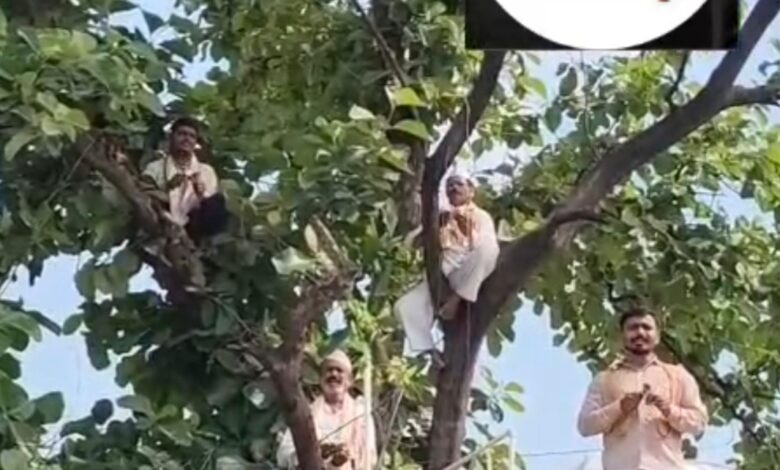 उपोषणकर्ते,वारकरी चढले थेट जिल्हाधिकारी कार्यालयासमोरील झाडावर.