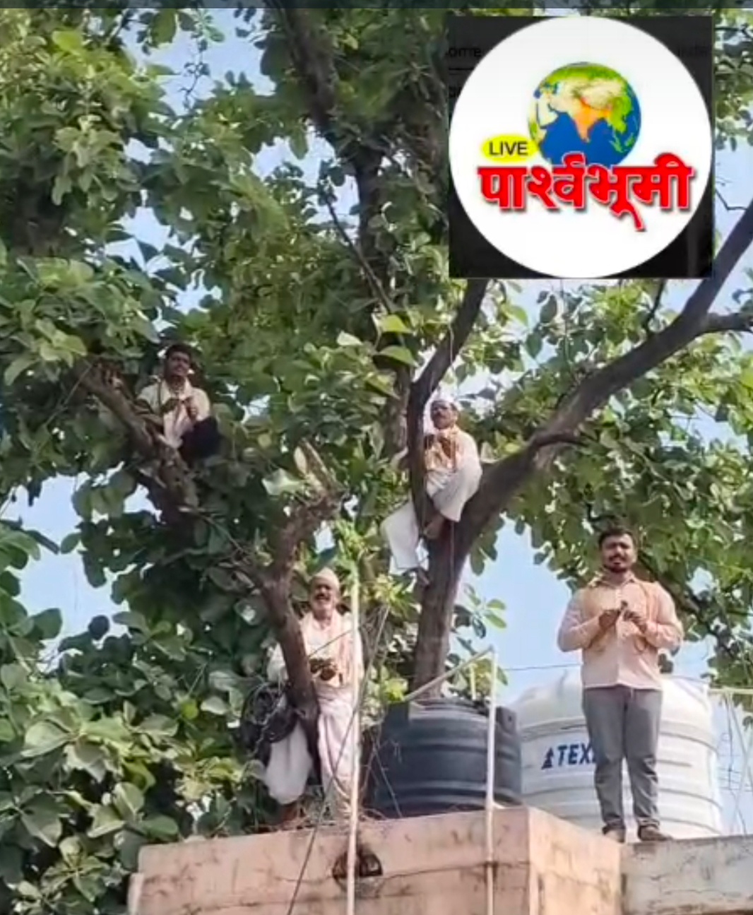 उपोषणकर्ते,वारकरी चढले थेट जिल्हाधिकारी कार्यालयासमोरील झाडावर.