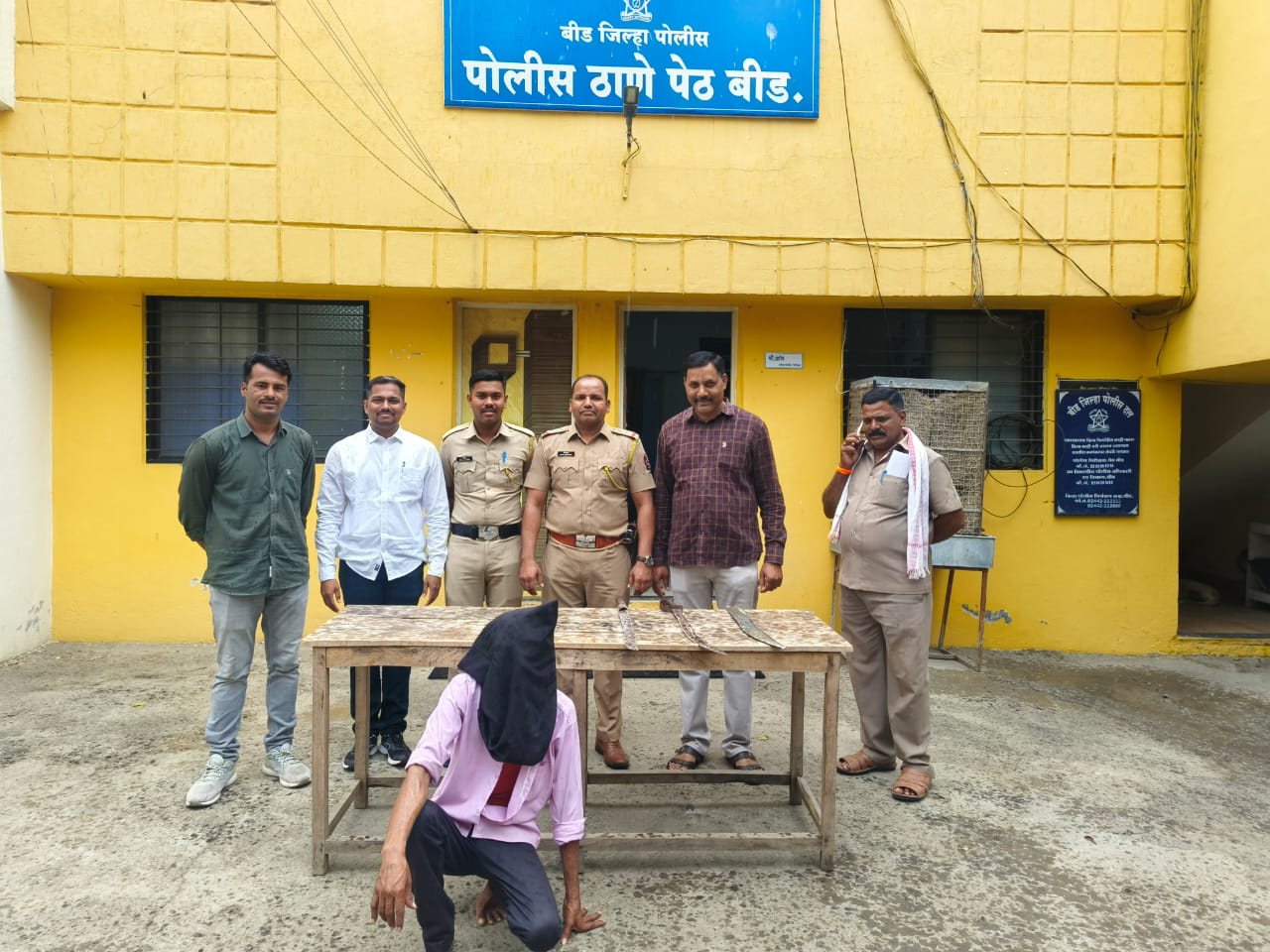 ही कारवाई बीड पोलीस अधीक्षक नवनीत कॉवत ,अपर पोलिस अधीक्षक सचिन पांडकर यांच्या मार्गदर्शनाखाली स.पो.नि नित्यानंद उबाळे सोबत पो ह 1353/सुभाष मोटे, पो ह 1065/नितीश माने, पो अं 2218/विष्णु गुजर, पो अं 367/शरद पोकळे यांनी केली.पेठ बीड पोलिस पो.अं 2218/विष्णु गुजर यांच्या फिर्यादीवरून तलवार बाळू प्रकरणी गुन्हा दाखल करण्यात आला.