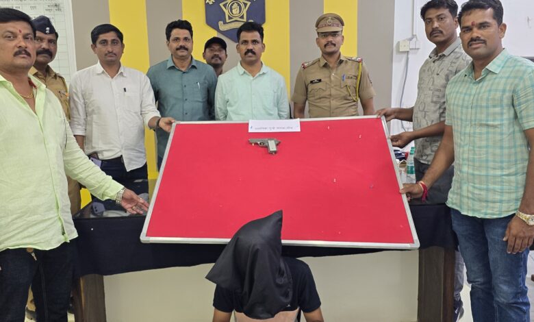 बीड (प्रतिनिधी) – शहरातील शाहू नगर भागात कमरेला गावठी पिस्टल लावून फिरणाऱ्या १८ वर्षीय युवकाला पोलीसांनी बेड्या ठोकल्या आहेत. त्याच्याकडून गावठी पिस्टल जप्त करण्यात आली असुन शिवाजीनगर पोलीस ठाण्यात गुन्हा दाखल झाला आहे.पोलीस अधिक्षक नवनीत काँवत यांनी अवैधरित्या गावठी पिस्टल बाळगणाऱ्या विरूध्द कारवाईचे आदेश दिले होते. त्यानुसार स्थानिक गुन्हे शाखेचे पो.नि.शिवाजी बंटेवाड यांना माहिती मिळाली की एक युवक शाहू नगर भागात कमरेला गावठी पिस्टल लावून उभा आहे. त्यानुसार पोलीसांनी त्या ठिकाणी कारवाई करत जुबेर जावेद सय्यद (वय १८ रा. हनुमान चौक, शाहू नगर बीड) याच्यावर झडप घालून पकडले. यावेळी त्याच्याकडून गावठी पिस्टल जप्त करण्यात आले आहे. सदरची कामगिरी ही पोलीस अधीक्षक नवनीत काँवत, अपर पोलीस अधीक्षक सचिन पांडकर, पोलीस निरीक्षक शिवाजी बंटेवाड, यांचे मार्गदर्शनाखाली पोउपनि श्रीराम खटावकर, पोह/अशोक दुबाले, सोमनाथ गायकवाड, पोना/बाळु सानप, पोकॉ/अर्जुन यादव, अश्विनकुमार सुरवसे, चालक/सिध्देश्वर मांजरे, नेम. स्थानिक गुन्हे शाखा, बीड यांनी केलेली आहे.