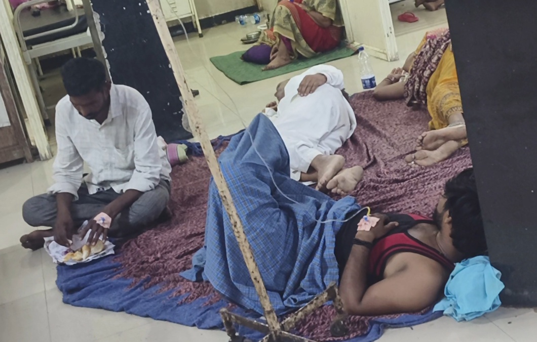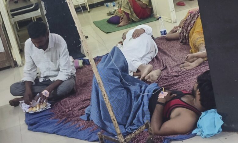 बीड जिल्हा रुग्णालयात रुग्णाला फरशीवर झोपून उपचार !