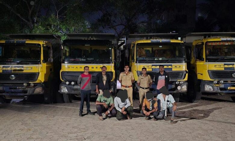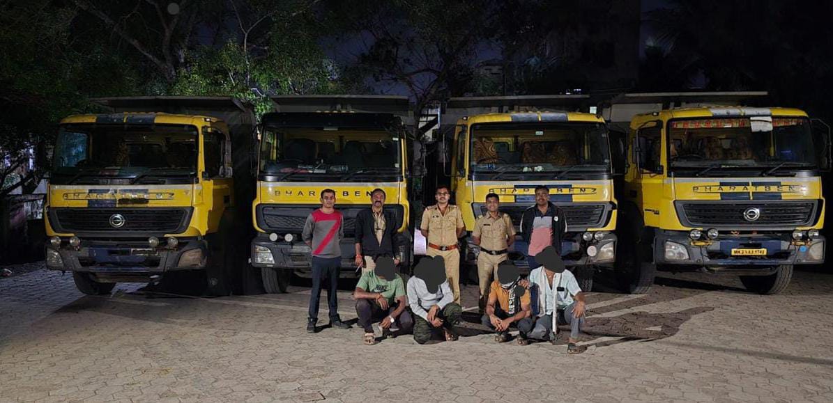 मुरुमाची चोरटी वाहतूक करणारे चार हायवा पोलिसांच्या ताब्यात.
