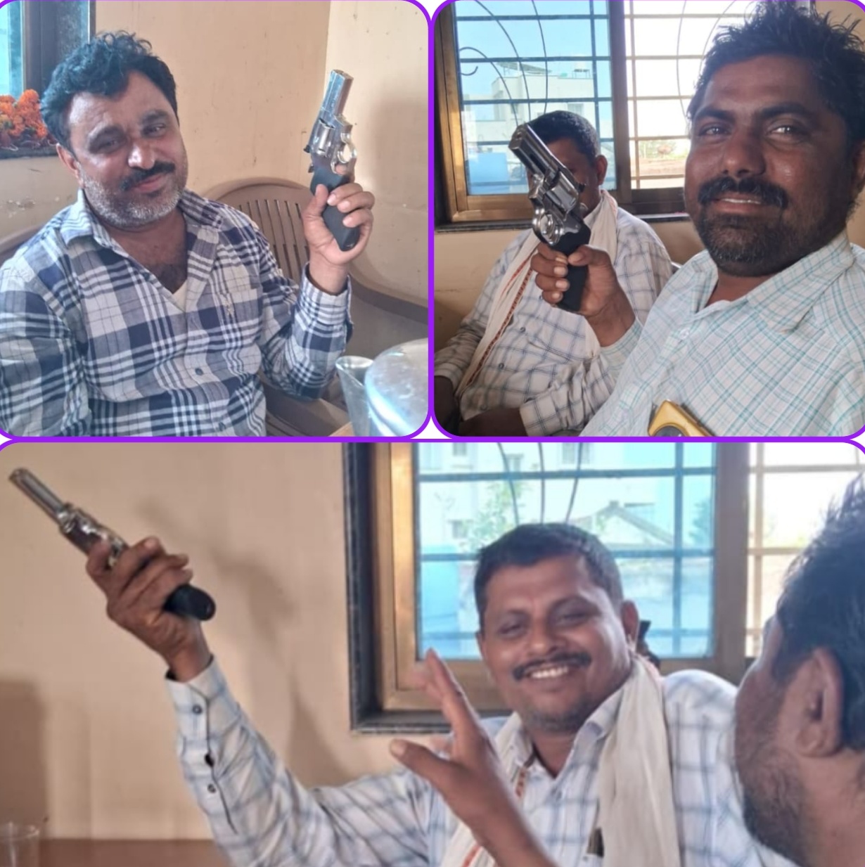 एका हॉटेलमध्ये बसून मद्यप्राशन करत हातात पिस्तूल घेऊन फोटोसेशन केल्यानंतर तेच फोटो सोशल मीडियावर व्हायरल केल्याचा प्रकार शनिवारी घडला. हॉटेलमध्ये बसलेल्या तीन व्यक्तिंच्या हातात पिस्तूल असल्याचे आणि समोर टेबलवर ग्लास असल्याचे व्हायरल फोटोमध्ये दिसून आले. या प्रकरणात केज पोलिसांनी केलेल्या चौकशीनंतर या प्रकाराविषयी अधिक माहिती समोर आली.प्रथम पिस्तूल नकली असल्याची माहिती देण्यात आली होती परंतु ते फोटो सोशल मीडियावर व्हायरल झाल्याने या प्रकरणी केज पोलीस ठाण्यातील पो.हे.कॉ. उमेश बाबुराव आघाव यांनी दिलेल्या फिर्यादीत म्हटले आहे की, दि.११ जुलै २०२५ रोजी सायंकाळी ७वाजण्याच्या सुमारास देवगाव ता. केज येथे गणेश अर्जुन मुंडे, रामदास जगन्नाथ मुंडे, पांडुरंग रामा मुंडे (सर्व रा. देवगाव ता. केज) आणि रामचंद्र परसराम ओमासे -रा.जि.सांगली यांनी विनापरवाना बेकायदेशीररित्या पिस्तूल हातात बाळगून त्याचे फोटो व्हॉटस्अॅप स्टेटस्ला ठेवून ते व्हायरल केले.केज परिसरात दहशत निर्माण करण्याचा प्रयत्न करत जिल्हाधिकाऱ्यांच्या शस्त्रबंदी आदेशाचे उल्लंघन केले. यावरुन चौघांविरुद्ध केज पोलीस ठाण्यात भारतीय न्यायसंहितेच्या कलम ३/२५ सह महाराष्ट्र पोलीस कायदा १९५१ चे कलम १२३, ३७ (१) चे उल्लंघन १३५ प्रमाणे गुन्हा दाखल झाला असून पुढील तपास सहाय्यक फौजदार वाघमारे हे करत आहेत.