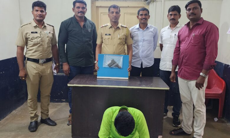 हॉटेल ओमकारसमोर संशयित व्यक्ती उभा असताना पोलिसांनी त्याला ताब्यात घेतले. त्याची अंगझडती घेतली असता, त्याच्या कमरेला पाठीमागील बाजूस एक अर्धवट गंजलेले लोखंडी गावठी पिस्तूल आढळून आले. पोलिसांनी पिस्तुलाच्या परवान्याबाबत विचारणा केली असता, आरोपीकडे कोणताही परवाना नसल्याचे समोर आले.