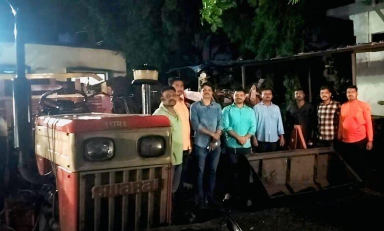 पोलीस अधीक्षक नवनीत कॉवत यांनी बीड जिल्हयामध्ये चालणार्या विनापरवाना बेकायदेशिररित्या वाळु उपसा करणार्या इसमांवर कारवाई करण्याचे स्थानिक गुन्हे शाखा बीड यांना आदेशित केले होते त्यावरुन दिनांक १६.०८.२०२५ रोजी स्थानिक गुन्हे शाखेच्या पथकाला गुप् बातमीदारामार्फत माहीती मिळाली की, मौजे म्हाळसपिंपळगांव शिवारातील गोदावरी नदी पात्रामध्ये अवैध विनापरवाना बेकायदेशिररित्या वाळु उपसा सुरु आहे. त्यावरुन पथकाने सदरील ठिकाणी जावुन गोदावरी नदी पात्रामध्ये छापा मारला असता पोलीसांना पाहुन वाळु उपसा करणारे टॅक्टर, रोडर हे पळुन गेले, पोलीसांनी टॅक्टर व रोडरचा पाठलाग करुन टॅक्टर व रोडर पकडले परंतु त्याचे दोन्ही चालक बाजुस असलेल्या शेतामध्ये पळुन गेले. गोदावरी नदीपात्रामध्ये अवैध वाळु उपसा करुन चोरटी वाहतुक करीत असलेल्या एक टॅक्टर व टॅक्टर रोडस असे एकुण ९,५०,०००/- रु मुद्देमाल जप्त करुन दोन्ही पळुन गेलेल्या चालकांविरुध्द पोलीस ठाणे गेवराई येथे गु.र.नं ४९२/२०२५ कलम ३०३ (२),३ (५) भारतीय न्यास संहीता कलमान्वये गुन्हा दाखल करण्यात आला आहे. असुन सदरील गुन्हयाचा पुढील तपास पोलीस ठाणे गेवराई हे करीत आहेत.