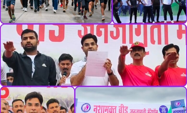 ५ व १० किलोमीटर अशा दोन गटांत विभागलेल्या या स्पर्धेत पोलीस अधीक्षक नवनीत कॉवत, जिल्हाधिकारी विवेक जॉन्सन, मुख्य कार्यकारी अधिकारी जितीन रेहमान यांच्यासह प्रशासनातील वरिष्ठ अधिकारी, पोलीस कर्मचारी, समाजसेवक, पत्रकार, विद्यार्थी व हजारो युवकांनी उत्साहाने सहभाग नोंदविला. नशाबंदीची हाक देत, व्यसनमुक्त समाजाचे सामर्थ्य जनतेपर्यंत पोहोचविण्याचा संदेश या मॅरेथॉनमधून देण्यात आला. व्यसनमुक्त जीवनशैली हीच खरी प्रगतीची गुरुकिल्ली आहे. नागरिकांनी एकजुटीने या मोहिमेत सहभागी व्हावे, असे आवाहन पोलीस अधीक्षक नवनीत कॉवत यांनी केले. हा उपक्रम बीड जिल्हा पोलीस दलाच्या कटिबद्धतेचे प्रतीक ठरला असून व्यसनमुक्त समाजाच्या निर्मितीसाठी जनतेने दिलेल्या उत्स्फूर्त प्रतिसादाने या चळवळीला नवे बळ मिळाले आहे. बीड जिल्हा पोलीस जनतेच्या सुरक्षेसाठी,व्यसनमुक्त समाजासाठी मॅरेथॉन रॅली घेऊन समाजासाठी अनोखा संदेश दिल्याने सर्वच स्तरातून पोलीस अधीक्षक नवनीत कॉवत यांचे कौतुक होत आहे.