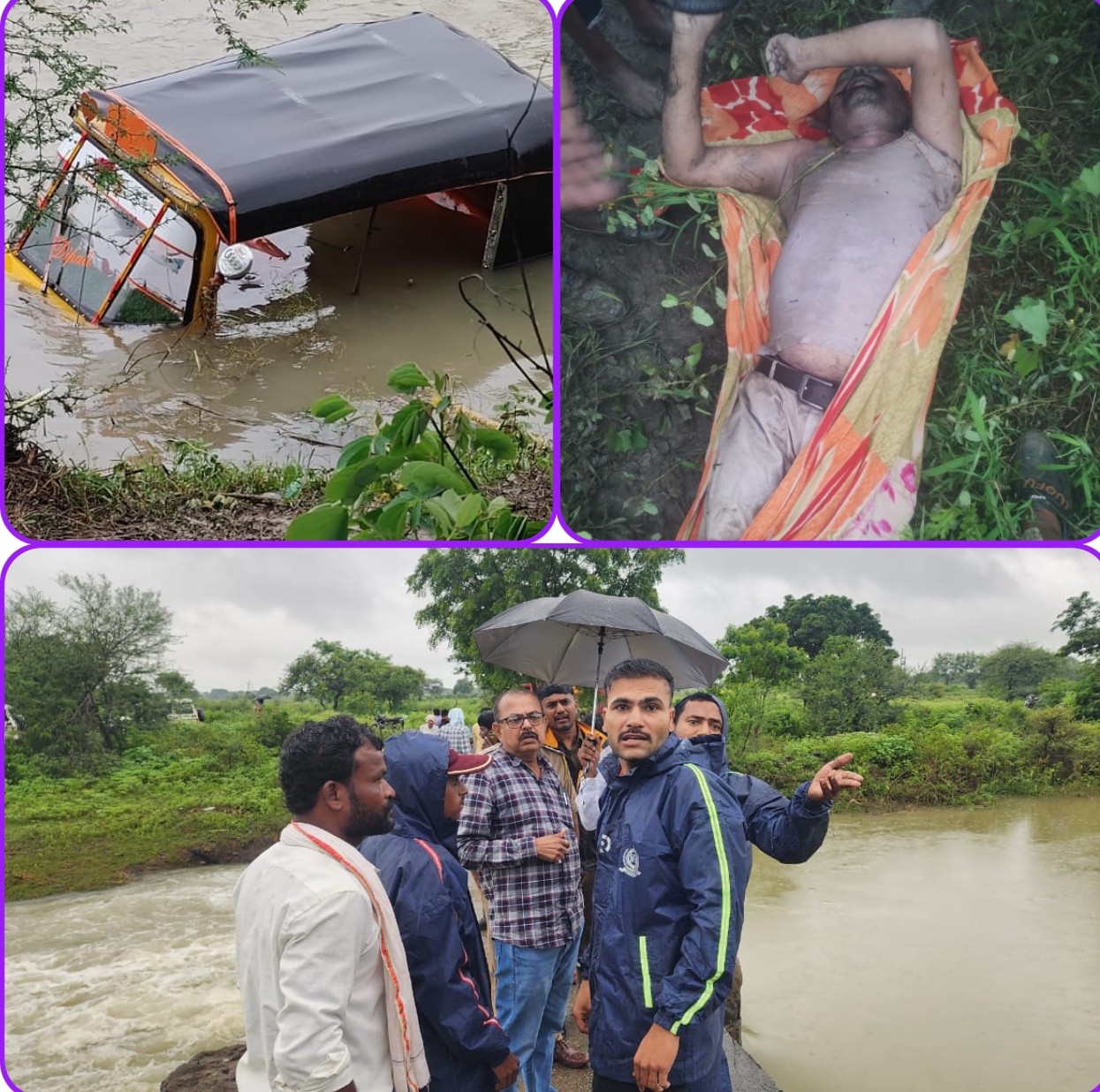पुराच्या पाण्यात रिक्षासह दोघे वाहून गेले.