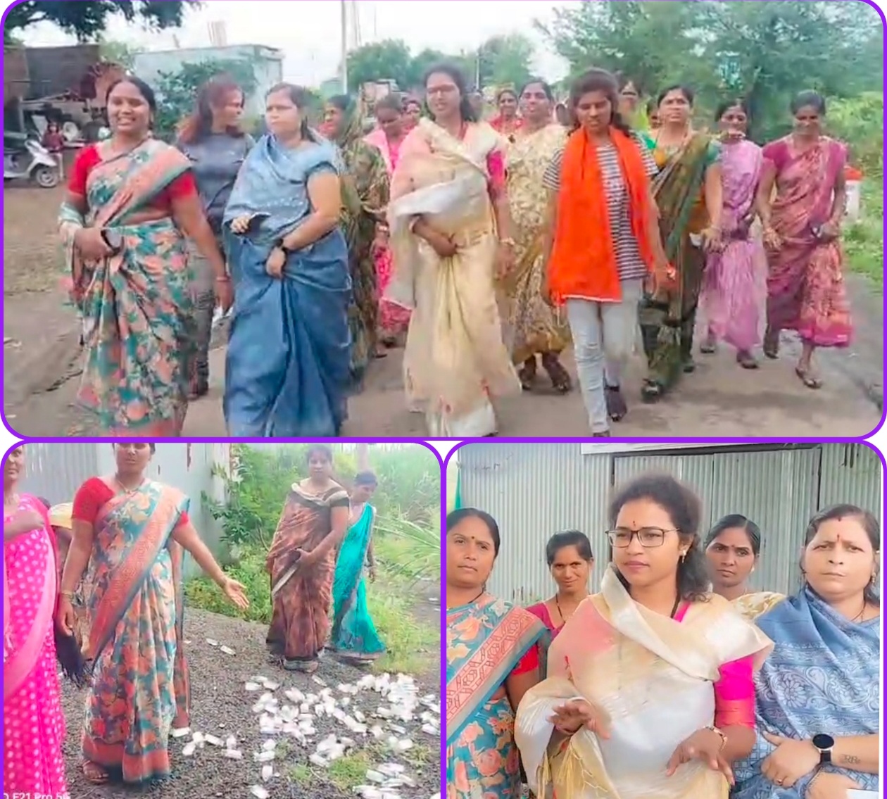महिला रणरागिनी आम्रपाली साबळे,सारिका पाटील,महिला सरपंच इंगोले यांनी केली गावातील दारूबंदीची मागणी.