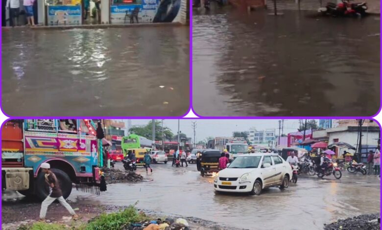 परंतु काल गुरूवारी दुपारनंतर झालेल्या जोरदार पावसामुळे शहरातील मुख्य रस्त्यांवर गुडघ्याएवढे पाणी साचले होते.गटारीतील कचरा रोडवर आल्याने अनेक ठिकाणी तळ्याचे स्वरूप आले होते.पुन्हा जालना रोडलगत असलेला मोठा नाला तुडूंब भरल्याने आणि त्यातील गाळ, कचरा रोडवर आल्याने सिमेंट रोडची एक बाजू पूर्णपणे पाण्यात होती. जालना रोडकडून शाहुनगरकडे जाणाऱ्या रस्त्याला तळ्याचे स्वरूप आले होते. या भागातील अनेक दुकानांमध्ये आणि घरामध्ये पावसाचे पाणी शिरल्याने मोठे नुकसान झाले.
