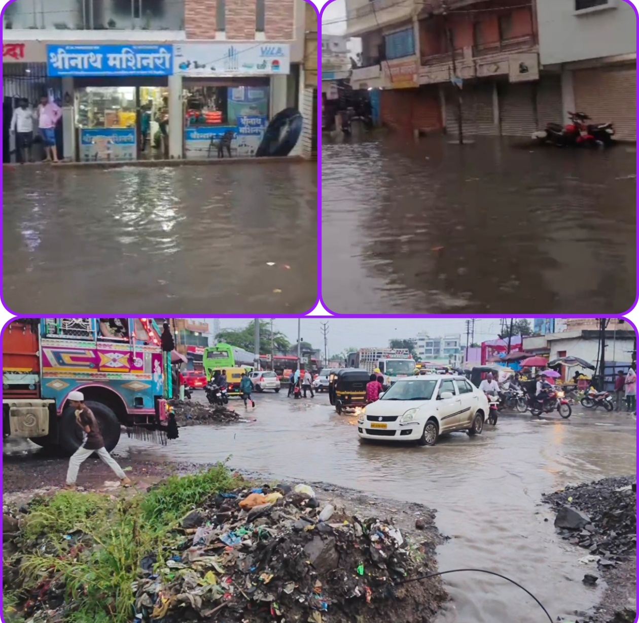 परंतु काल गुरूवारी दुपारनंतर झालेल्या जोरदार पावसामुळे शहरातील मुख्य रस्त्यांवर गुडघ्याएवढे पाणी साचले होते.गटारीतील कचरा रोडवर आल्याने अनेक ठिकाणी तळ्याचे स्वरूप आले होते.पुन्हा जालना रोडलगत असलेला मोठा नाला तुडूंब भरल्याने आणि त्यातील गाळ, कचरा रोडवर आल्याने सिमेंट रोडची एक बाजू पूर्णपणे पाण्यात होती. जालना रोडकडून शाहुनगरकडे जाणाऱ्या रस्त्याला तळ्याचे स्वरूप आले होते. या भागातील अनेक दुकानांमध्ये आणि घरामध्ये पावसाचे पाणी शिरल्याने मोठे नुकसान झाले.