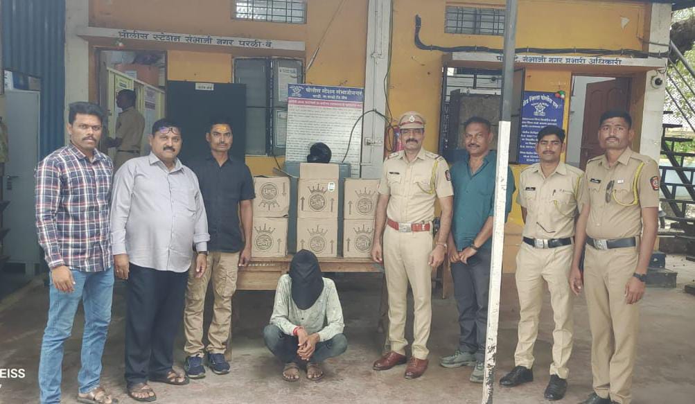 परळी प्रतिनिधी :- परळी शहरांमध्ये गणेश विसर्जनाच्या पार्श्वभूमीवर संभाजीनगर पोलिसांनी पूर्ण शहरांमध्ये सुरक्षेच्या कारणाने फेरी करत असताना काही ठिकाणी दारू दुकान चालू असल्याचे दिसून आले आल्याने संभाजीनगर पोलिसांनी श्यामप्रसाद मुखर्जी उडान पुलाजवळ वाल्मिकी नगर मध्ये एका राहत्या घरामध्ये जवळपास लाखो रुपयांचा देश दारूचा बॉक्स जप्त केला आहे आणि एका व्यक्तीला ताब्यात घेतले आहे तो देशी दारूचा माल कुठून आला कसा आला याची चौकशी संभाजीनगर पोलीस करत आहेत गुन्हा दाखल करण्याची प्रक्रिया संभाजीनगर पोलीस स्टेशनला चालू आहे तुम्हाला कुठून आणि कसा आला याचा तपास संभाजीनगर पोलीस करत आहेत तपासामध्ये तू कुणाचा माल आहे हे निष्पन्न होईल अशी माहिती संभाजीनगर पोलिसांनी दिली आहे ही कारवाई संभाजीनगर पोलीस ठाण्याचे पोलीस निरीक्षक धनंजय ढोणे यांच्या मार्गदर्शनाखाली डीबी पथकाचे नरहरी नागरगोजे साजिद पठाण प्रवीण पुरे भगवान चव्हाण शंकर डोंगरे गणेश येरडलावार यांनी कारवाई केली आहे.