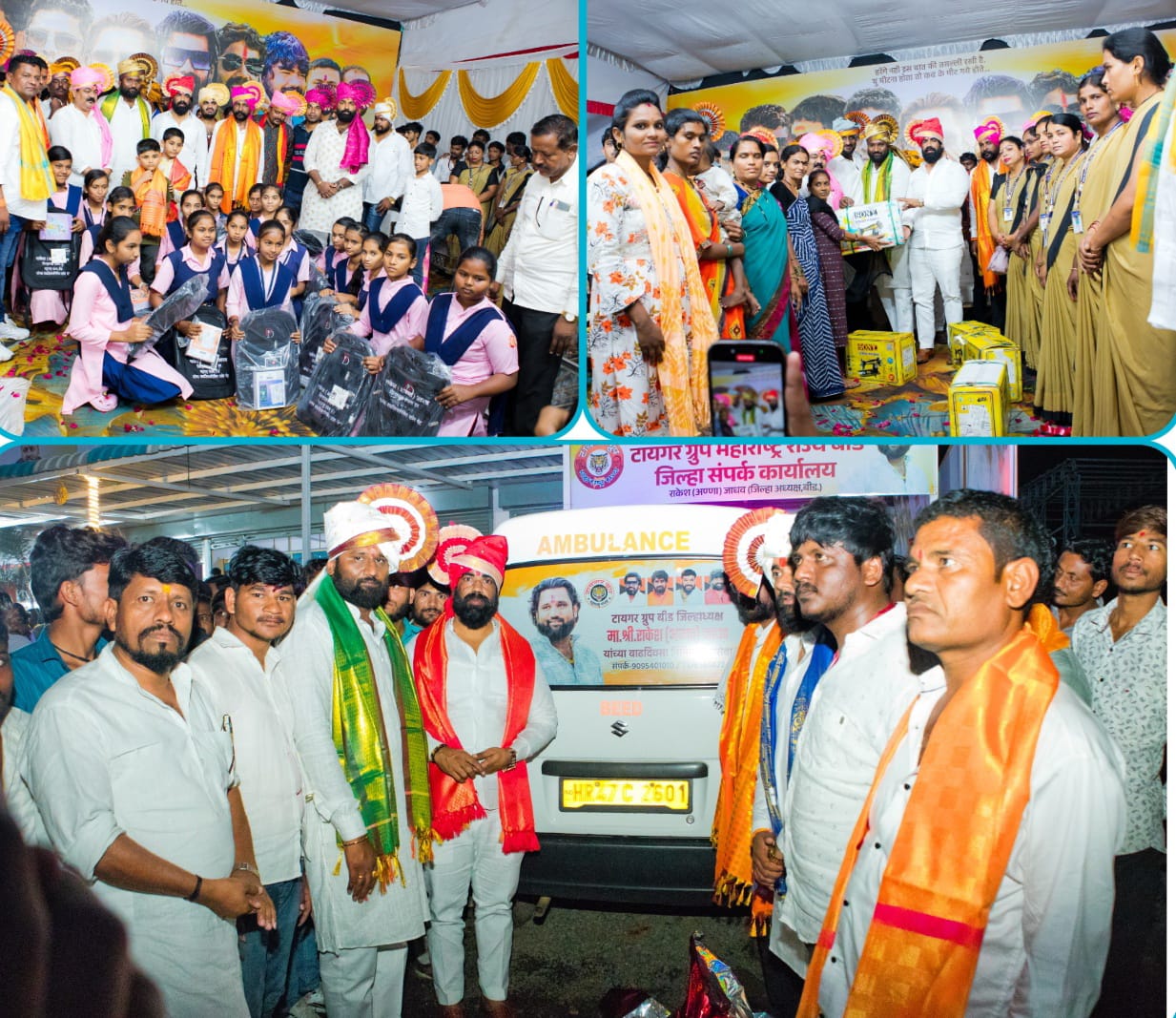 25 शिलाई मशीन, 100 विद्यार्थ्यांना शालेय साहित्य, 1001, नागरिकांचा एक लक्ष रुपयांचा अपघात विमा, महिला मातांना साडी वाटप, रक्तदान शिबिर, आरोग्य शिबिर संपन्न.