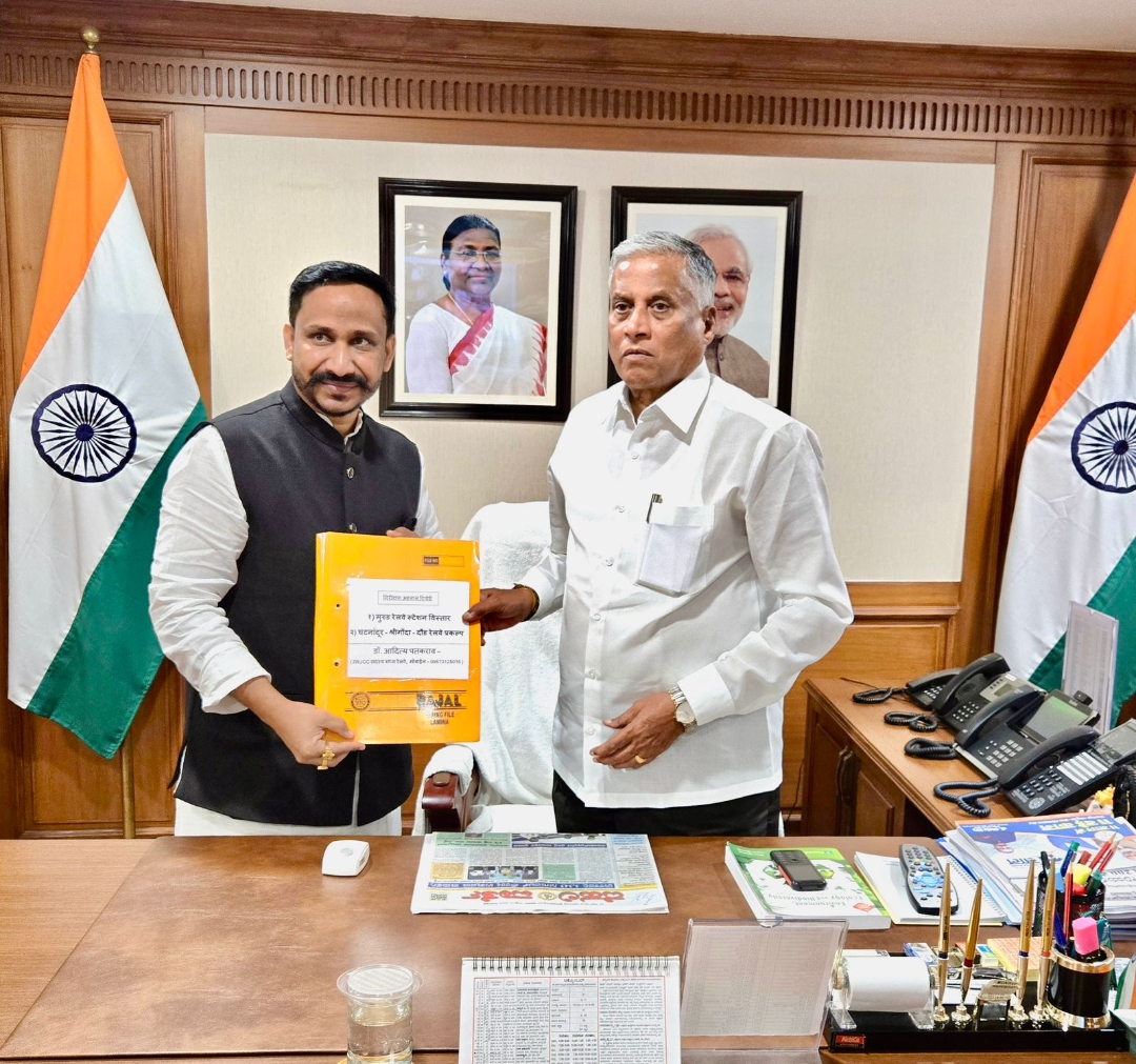 घाटनांदुर-श्रीगोंदा-दौंड प्रकल्पा सह बीड स्टेशन विस्तारा साठी डॉ. आदित्य पतकराव व केंद्रीय रेल्वे राज्य मंत्री व्ही. सोमन्ना यांची दिल्ली रेल भवनात महत्वपूर्ण बैठक