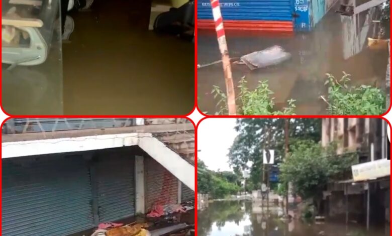 मुसळधार पावसाचा कहर–जालना रोड वरील दुकानात पाणी शिरले.