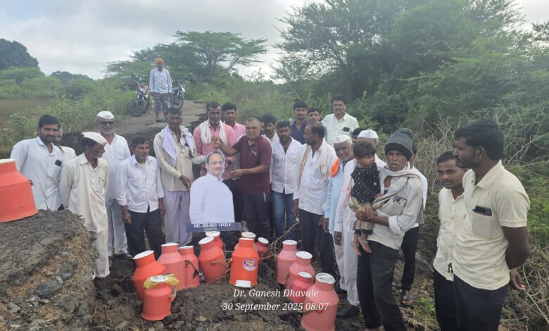 दरम्यान, लोकप्रतिनिधी व अधिकारी केवळ पाहणी करून फोटोसेशन करून निघून जात आहेत, मात्र प्रत्यक्ष दुरुस्तीची कामे सुरू न झाल्याने ग्रामस्थांच्या संतापाचा पारा चढला आहे. अखेर आज (दि.३०, मंगळवार) सामाजिक कार्यकर्ते डॉ.गणेश ढवळे यांच्या नेतृत्वाखाली ग्रामस्थांनी पालकमंत्री अजितदादा पवार यांच्या प्रतिमेला दुग्धाभिषेक घालत “अजितदादा, आता तरी पावताल का? आम्हाला रस्ता मिळेल का?” असा थेट सवाल उपस्थित केला.