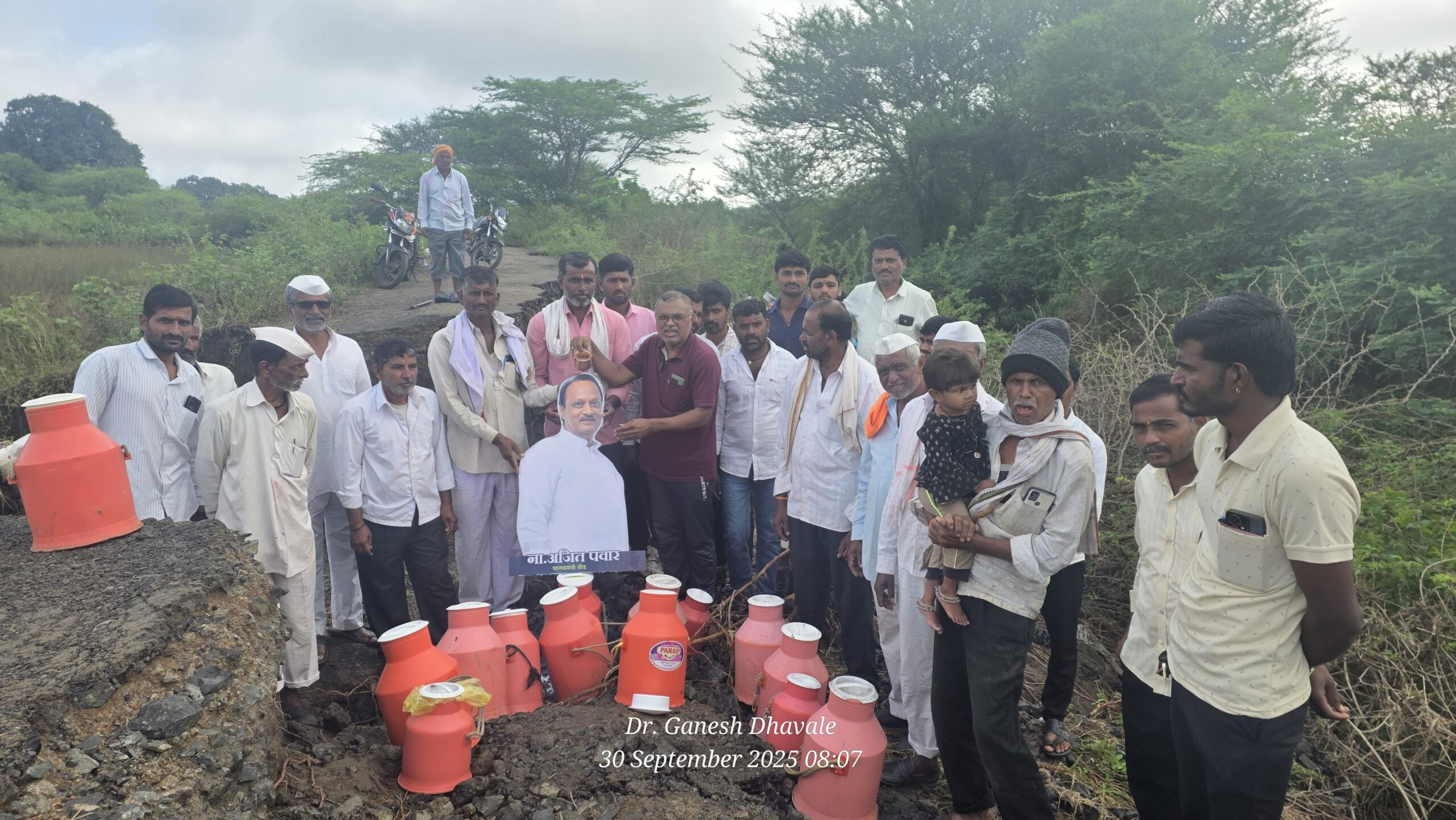 दरम्यान, लोकप्रतिनिधी व अधिकारी केवळ पाहणी करून फोटोसेशन करून निघून जात आहेत, मात्र प्रत्यक्ष दुरुस्तीची कामे सुरू न झाल्याने ग्रामस्थांच्या संतापाचा पारा चढला आहे. अखेर आज (दि.३०, मंगळवार) सामाजिक कार्यकर्ते डॉ.गणेश ढवळे यांच्या नेतृत्वाखाली ग्रामस्थांनी पालकमंत्री अजितदादा पवार यांच्या प्रतिमेला दुग्धाभिषेक घालत “अजितदादा, आता तरी पावताल का? आम्हाला रस्ता मिळेल का?” असा थेट सवाल उपस्थित केला.
