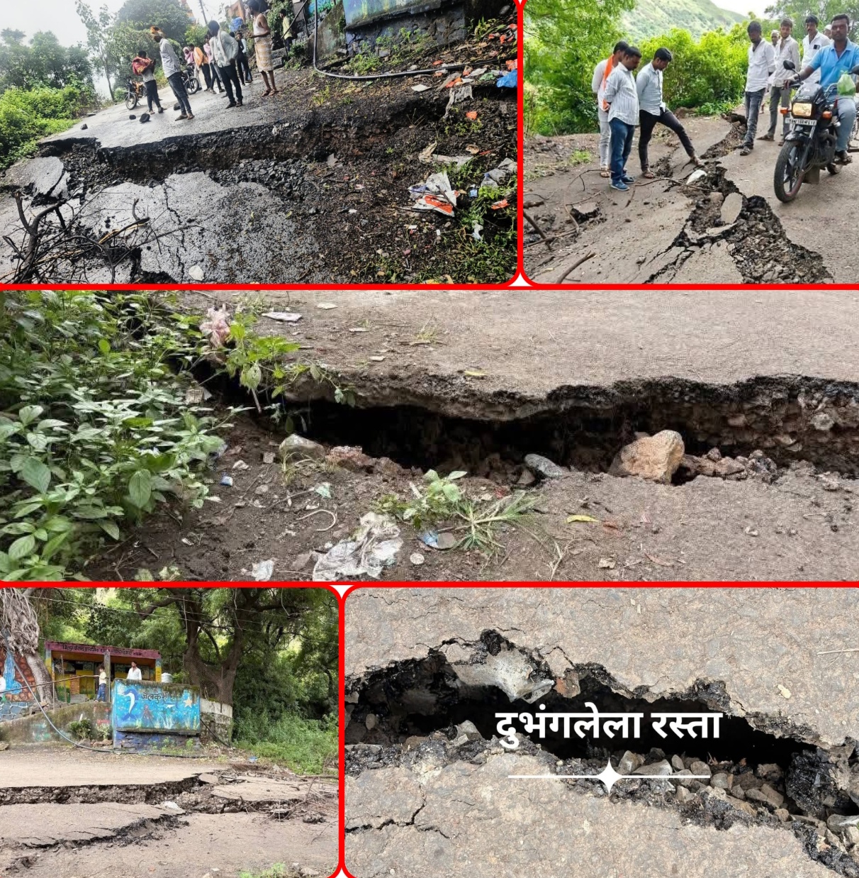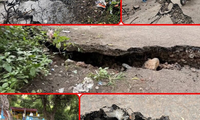 कपिलधारवाडी रस्त्याला पडले भगदाड,रस्ता कसा खचला पहा !