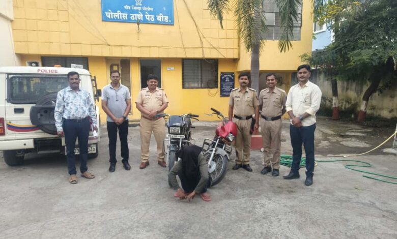 बीड (प्रतिनिधी)पेठ बीड पोलिसांनी चोरीच्या गुन्ह्यातील मोटारसायकल जप्त करून आरोपीस अटक केली आहे. ही कारवाई उपविभागीय पोलिस अधिकारी सचिन पोंडकर यांच्या मार्गदर्शनाखाली करण्यात आली.