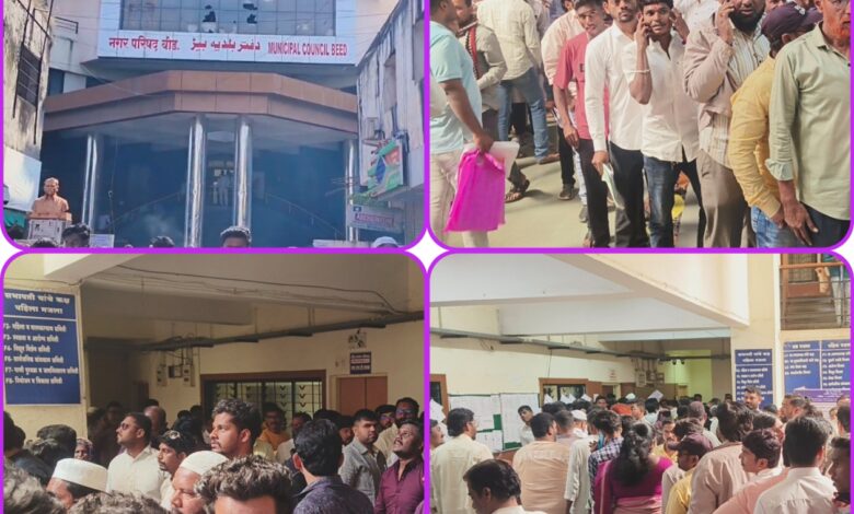बीड नगरपालिकेत उमेदवारांची जत्रा ; अर्ज भरताना गोंधळाचे चित्र.