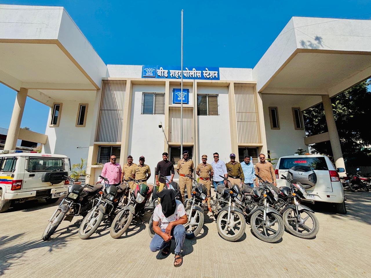 बीड शहर पोलिसांनी मोटरसायकल चोरीचे जाळे उधळले;आठ गाड्या जप्त,आरोपी अटकेत.