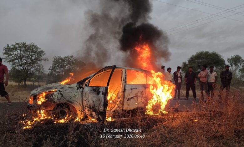 प्रसंगावधान राखत त्यांनी तात्काळ वाहन रस्त्याच्या कडेला थांबवून बाहेर पडले. काही क्षणांतच कारने पेट घेतला. वायर शॉर्टसर्किटमुळे आग लागल्याचा प्राथमिक अंदाज व्यक्त केला जात आहे. डॉ. भारत मेंगडे यांच्या सतर्कतेमुळे मोठी जीवितहानी टळली.
