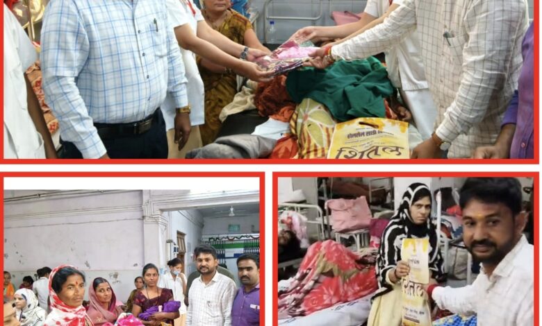 बीड जिल्हा रुग्णालयामध्ये नवजात बालकांना ड्रेस तर मातांना साडी व फळ वाटप.
