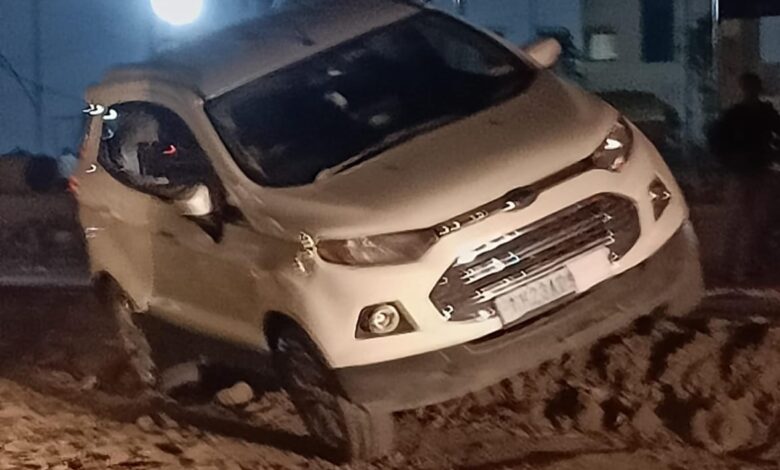सूचना फलक नसल्याने चारचाकी गेली खड्ड्यात !
