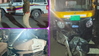 चारचाकी व ऑटोरिक्षाची समोरासमोर जोराची धडक.