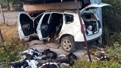 कत्तलसाठी जनावरे घेऊन जाणाऱ्या कारचा भीषण अपघात.