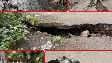 कपिलधारवाडी रस्त्याला पडले भगदाड,रस्ता कसा खचला पहा !